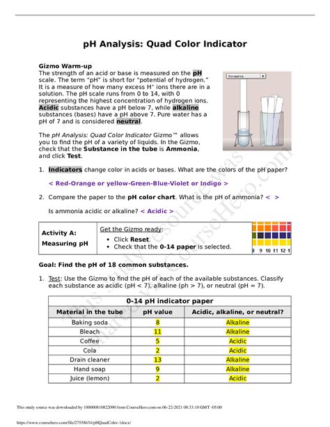 Read Ph Analysis Quad Color Indicator Gizmo Answer Key Reader