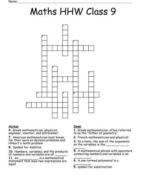 Read Online Math Crossword Puzzles With Answers For Class 9 Doc