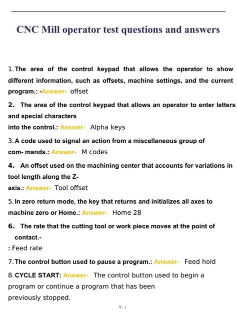 Read milling machinist sample exam PDF